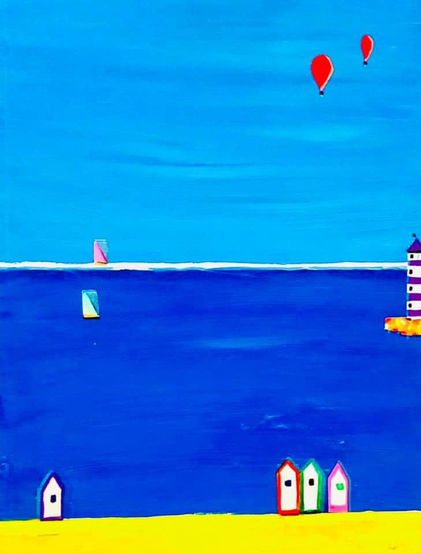 My paintings are a fusion of contour, colour, collage, and composition, conjuring up a visual, sometimes fantastical narrative.